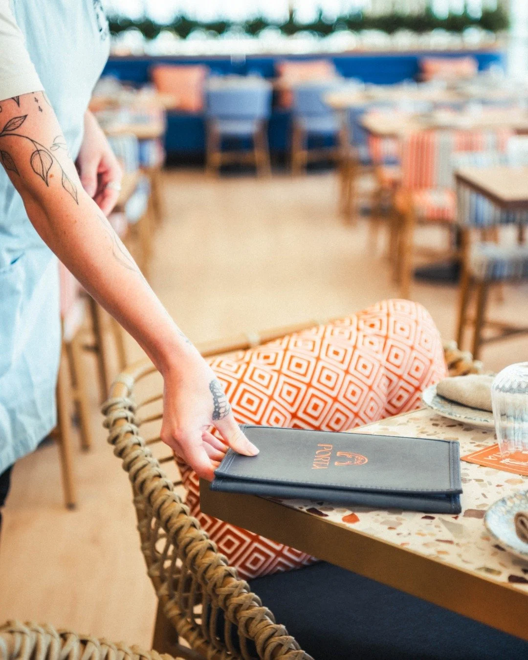 Porta’s visual brand identity is inspired by easy Mediterranean coastal dining, capturing a sense of warmth, simplicity and laid-back elegance. The colour palette leans into sun-washed tones and natural hues that reflect the waterfront setting and the feeling of long lunches, shared plates and unhurried time spent by the water.